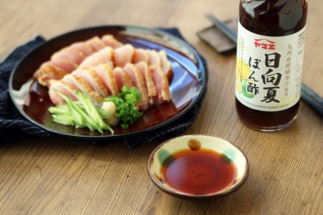 宮崎県産の日向夏と平兵衛酢(へべす)、九州産ゆずの生しぼり果汁を使用し、丸大豆醤油・かつおだし・昆布だしで味を整えました。鍋物はもちろん、湯豆腐・焼き魚・和風サラダ・酢の物・ぎょうざ・鉄板焼き等、いろいろな料理にご利用いただけます。