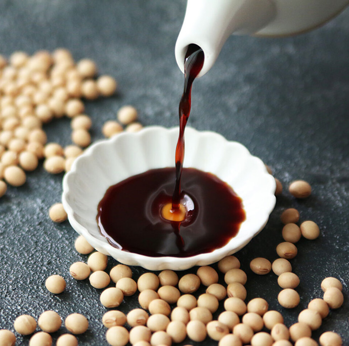 ヤマエ食品のしょうゆは、こうじと大豆で作ったもろみから生揚げしょうゆを作り、独自のアミノ酸液を加えてブレンドしています。自社で一貫生産しているため、細かな味の調整が可能で、品質の高さが強みです。南九州の甘みがあるしょうゆに対して、濃口、淡口、国産、丸大豆、再仕込みの5種類を取り扱っています。